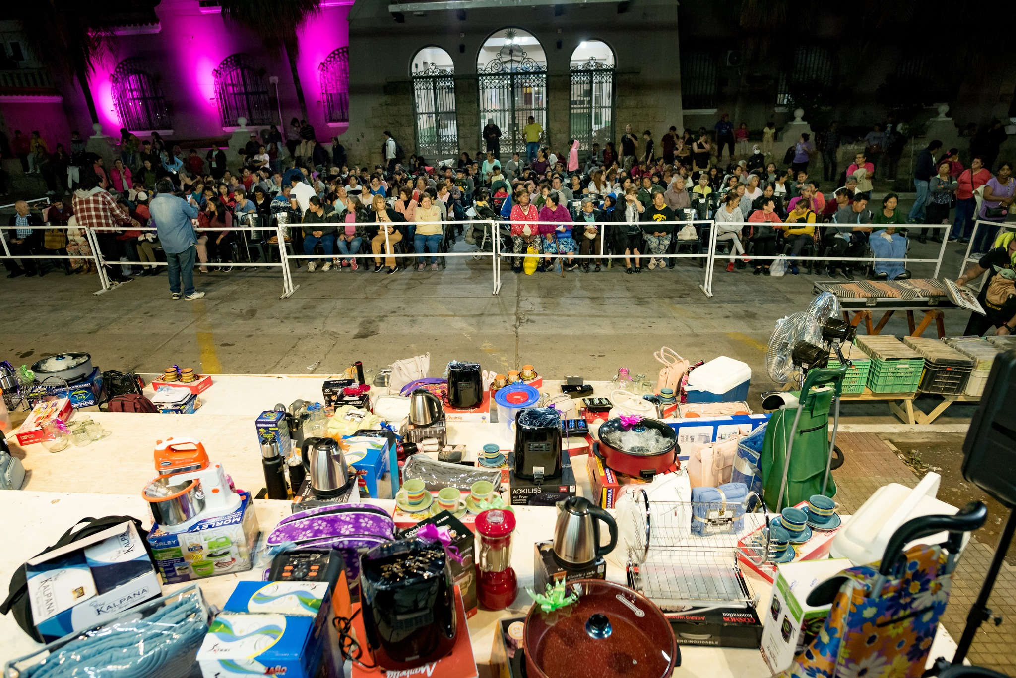 La noche incluyó una gran cantidad de sorteos con más de 250 premios, lo que marcó un incremento respecto a ediciones anteriores. “Este año apostamos a aumentar la cantidad y calidad de los regalos, entregamos desde sets de camping completos —con gazebo, reposeras y termos— hasta electrodomésticos como cocinas, heladeras, lavarropas, freidoras, bocas eléctricas, además de parlantes, artículos de bazar, carteras y accesorios”, detalló Massa.