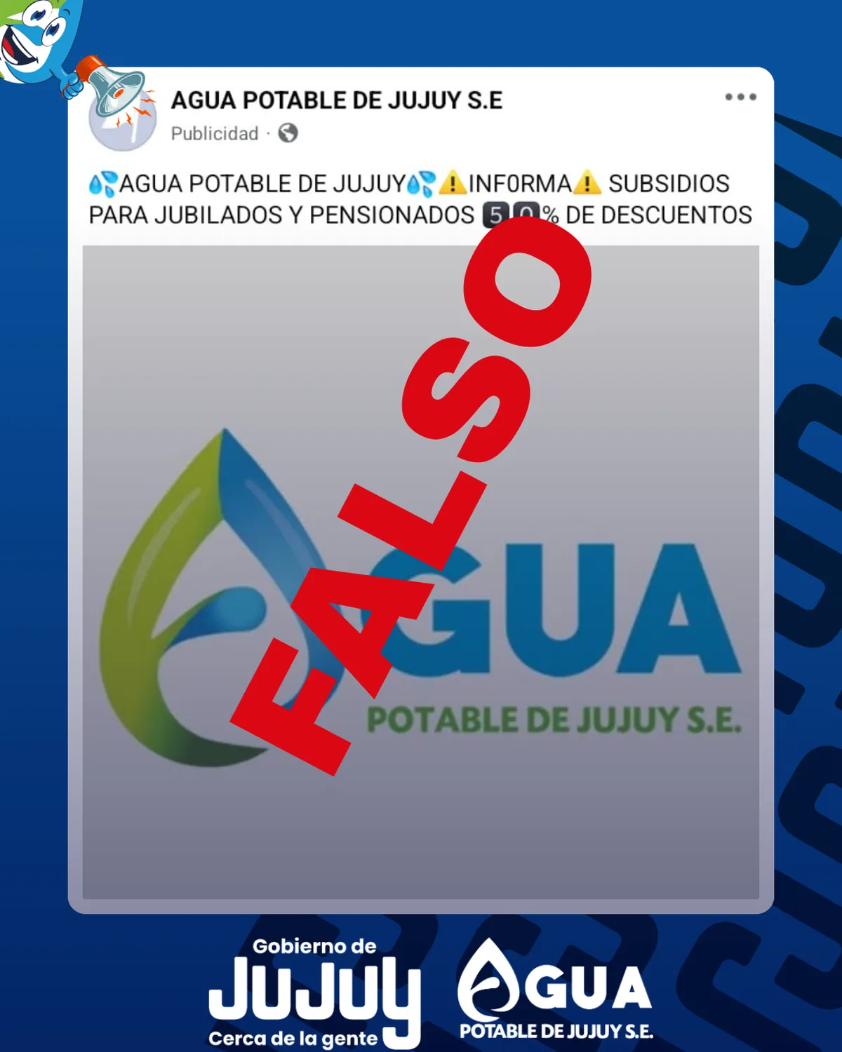 Ante la reciente difusión de información en redes sociales sobre Agua Potable de Jujuy, la empresa desmiente categóricamente las publicaciones de dicho anuncio.