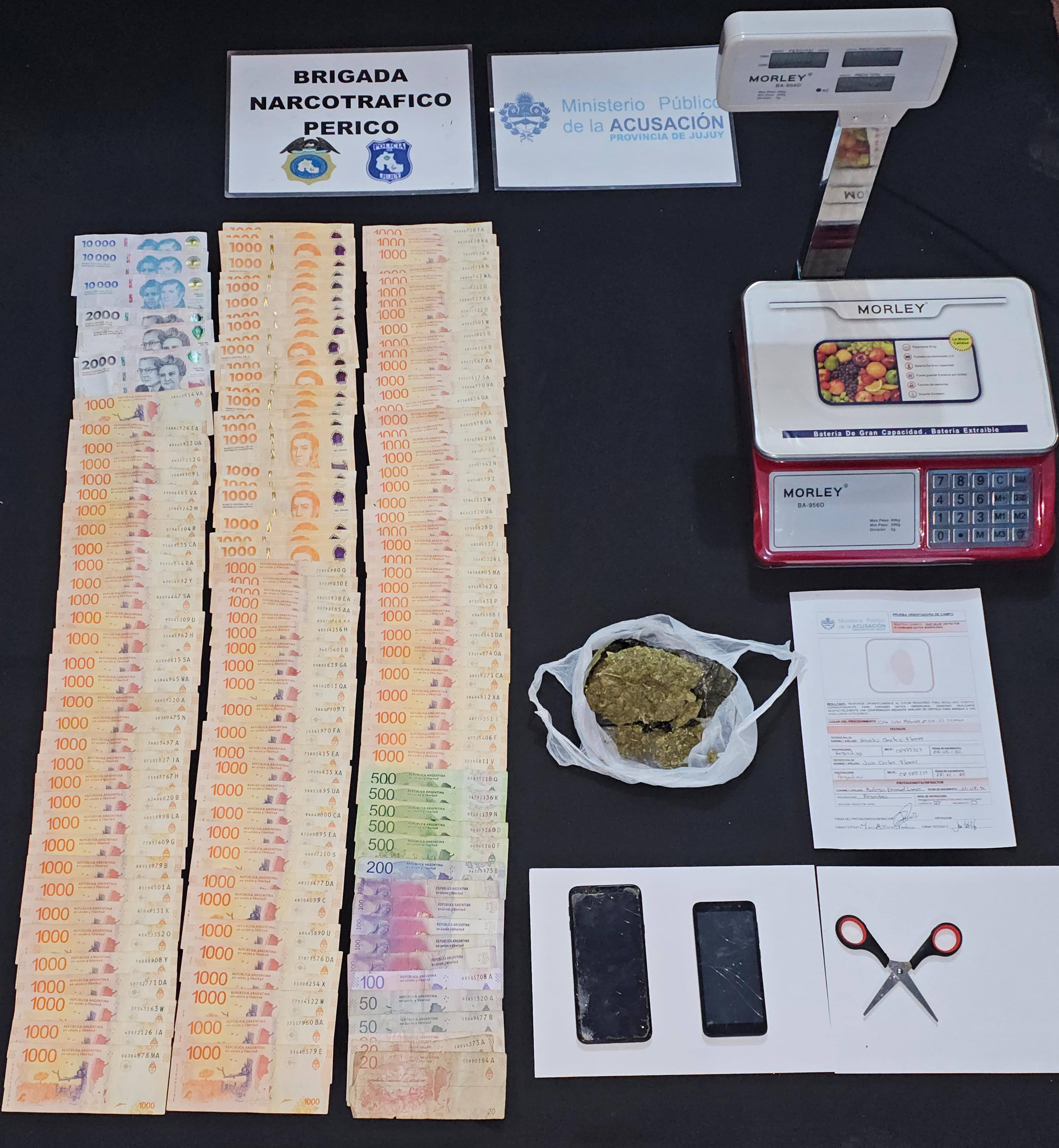 La intervención se originó a partir de una denuncia presentada por el Centro Vecinal del Barrio 1° de Mayo ante la brigada de Narcomenudeo de Perico. El allanamiento se realizó en una vivienda ubicada en la calle Islas Malvinas 510, arrojando como resultado el secuestro de 112 gramos de marihuana compactada, dinero en efectivo por un total de $159.460, dos teléfonos celulares, una balanza electrónica en funcionamiento y una tijera de corte.