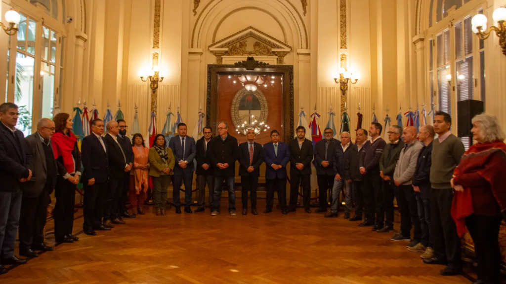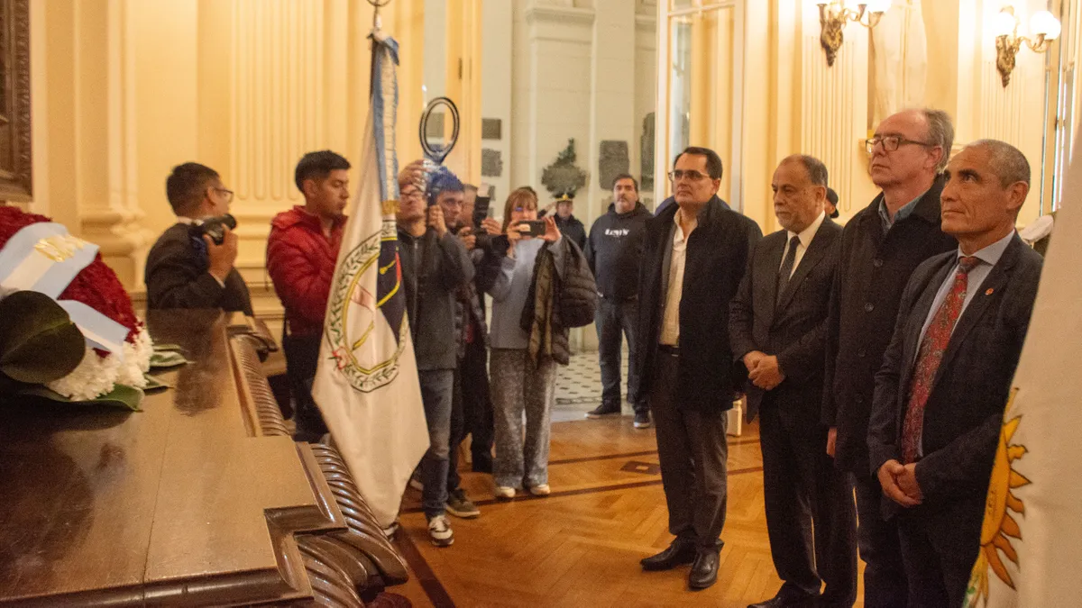 Los ministros Normando Álvarez García y Carlos Stanic, encabezaron el acto en el salón de la Bandera en alusión a la fecha. Acompañaron autoridades del Colegio de Ingenieros y autoridades provinciales.