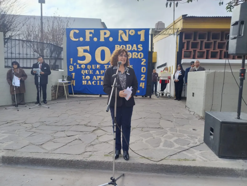 “Estos cincuenta años seguramente dejaron huellas en sus alumnos, en sus docentes y en la comunidad”, destacó Serrano al dar su discurso. “Una institución que acompaña el desarrollo de la provincia y de cada familia de esta institución. Debemos redoblar la propuesta educativa de la Formación Profesional para fortalecer estos trayectos formativos, y destacar la tarea de aquellos visionarios que pensaron en el oficio para nuestros jóvenes”, agregó la ministra.
