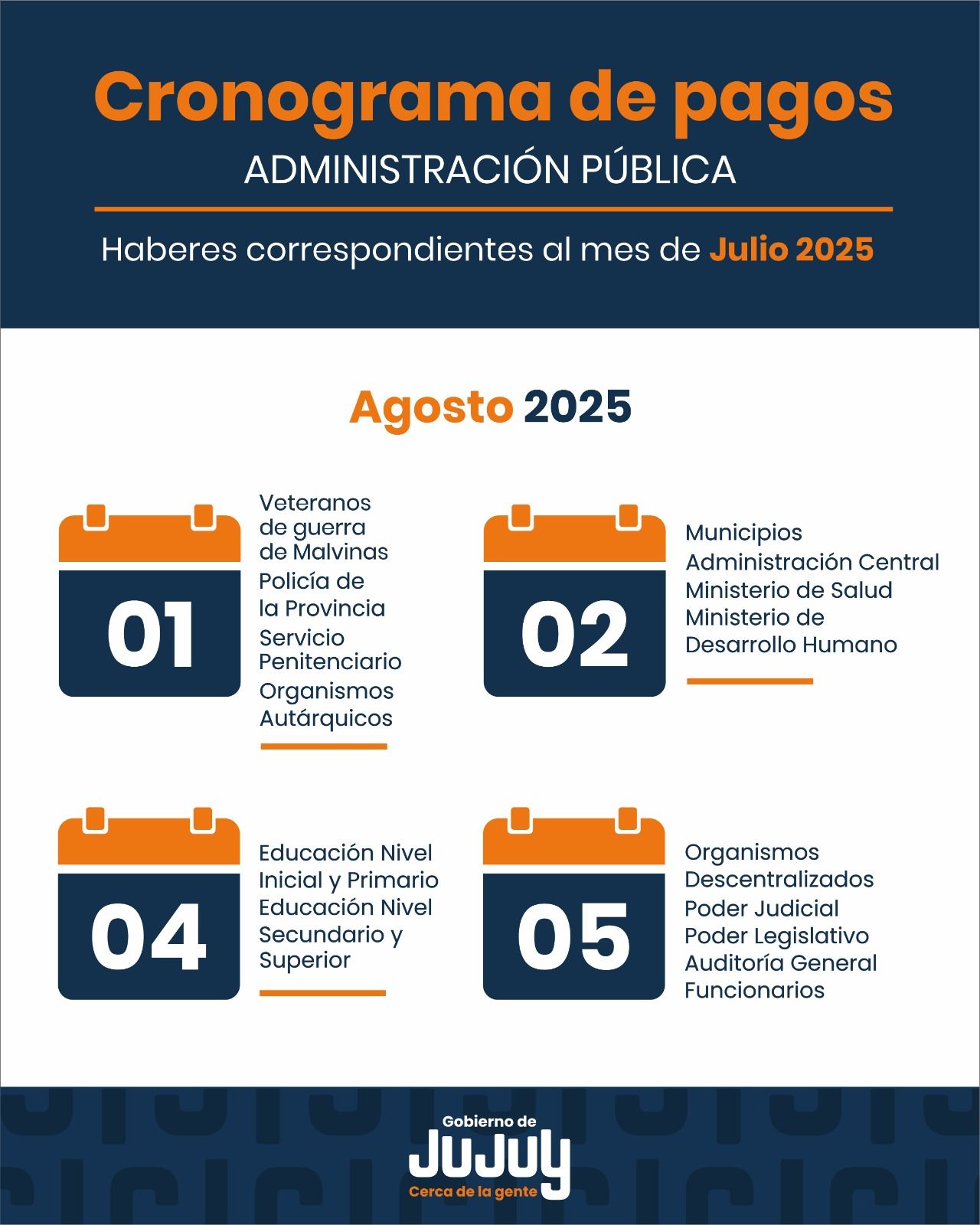 ActualidadCRONOGRAMA DE PAGOS jujuy19 meses atrás9 meses atrás01 mins Cronograma de pagos de los haberes correspondientes al mes de julio para agentes de la administración pública de Jujuy.Navegación de entradasAnterior: SAN PEDRO: CONVERSATORIO PARA INSTITUCIONES EDUCATIVASSiguiente: SAN PEDRO: DETIENEN A UN HOMBRE CON UN ARMA DE FUEGODeja una respuesta Cancelar la respuestaTu dirección de correo electrónico no será publicada. Los campos obligatorios están marcados con *Comentario *Nombre * Correo electrónico * Web Guarda mi nombre, correo electrónico y web en este navegador para la próxima vez que comente.