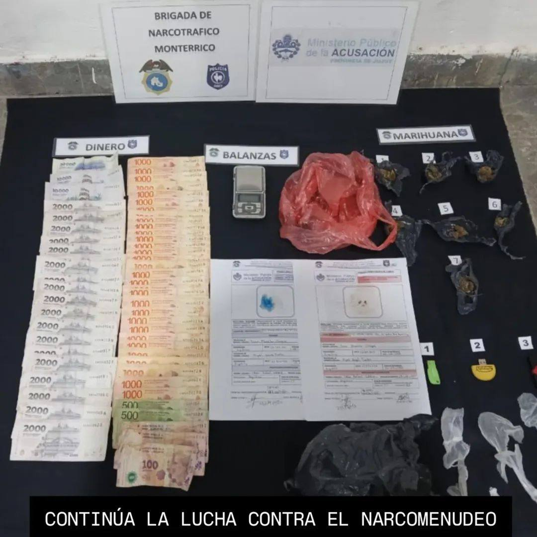 En los allanamientos, se secuestraron más estupefacientes, una balanza de precisión tipo gramera, elementos de fraccionamiento y dinero en efectivo, prueba contundente del negocio ilícito.