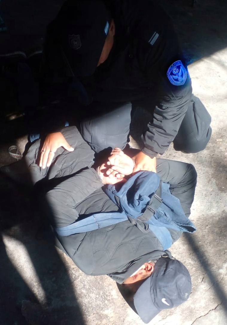Gracias a la rápida respuesta y la descripción precisa de los sospechosos, los agentes individualizaron a los individuos en la calle Hipólito Irigoyen, entre Santiago del Estero y Dorrego. Se constató que uno de los aprehendidos poseía MÚLTIPLES PEDIDOS DE COMPARENDO VIGENTES DEL 2018 DE LA PROVINCIA DE CÓRDOBA Y UNO DEL 2019 DE LA PROVINCIA DE SALTA.