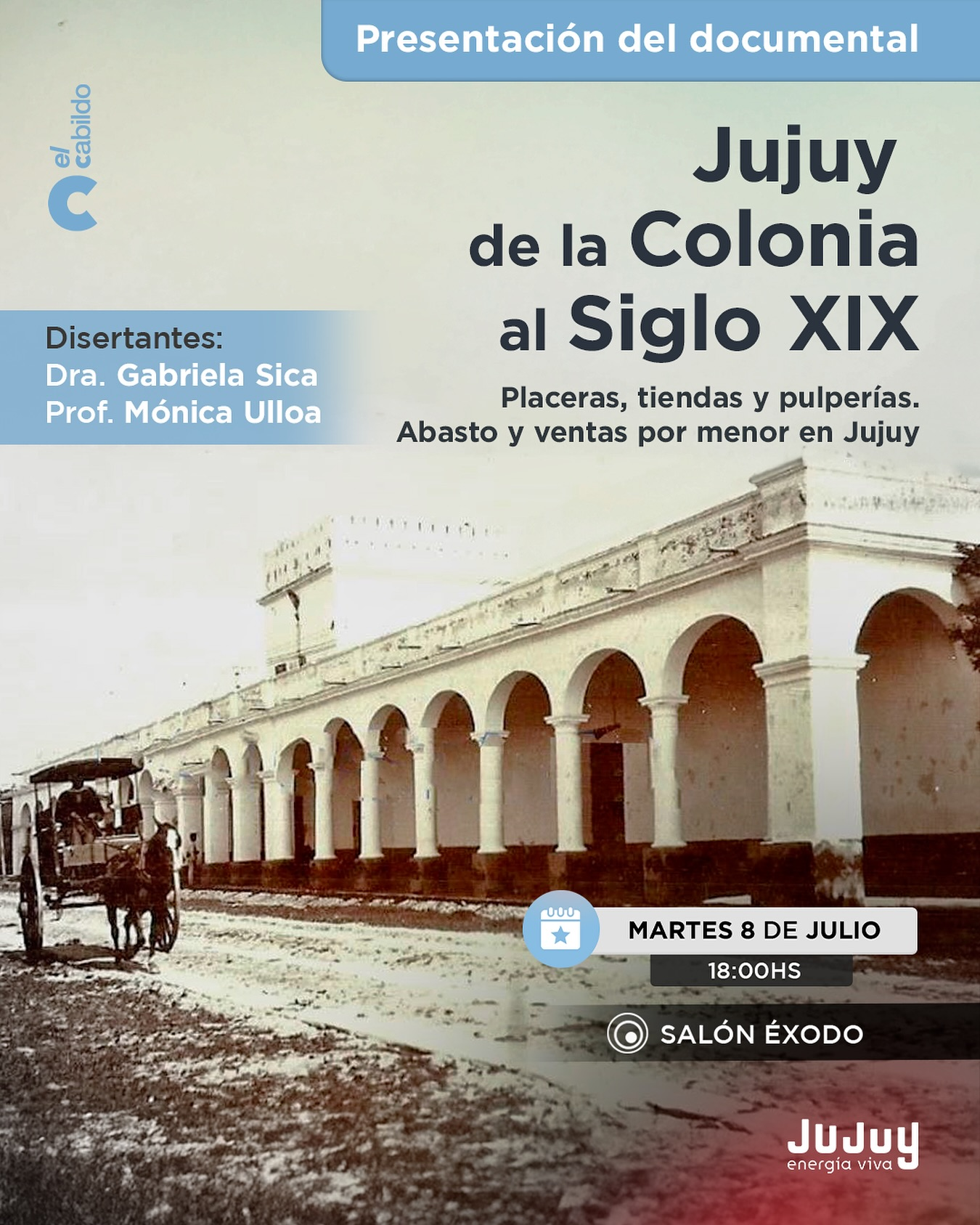 El próximo martes 8 de julio a las 18:00 se presentará el documental “Jujuy de la Colonia al Siglo XIX” en el Salón Éxodo. La proyección invita a realizar un recorrido por la vida cotidiana de los jujeños en tiempos coloniales, cuando el Cabildo no solo era un edificio, sino el centro neurálgico del abastecimiento y la organización social.