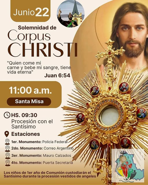 En el contexto del Jubileo 2025, la Iglesia San Pedro de Río Negro invita a la comunidad a participar de las celebraciones litúrgicas por la solemnidad de Corpus Christi y en honor al Santo Patrono de la ciudad de San Pedro de Jujuy.