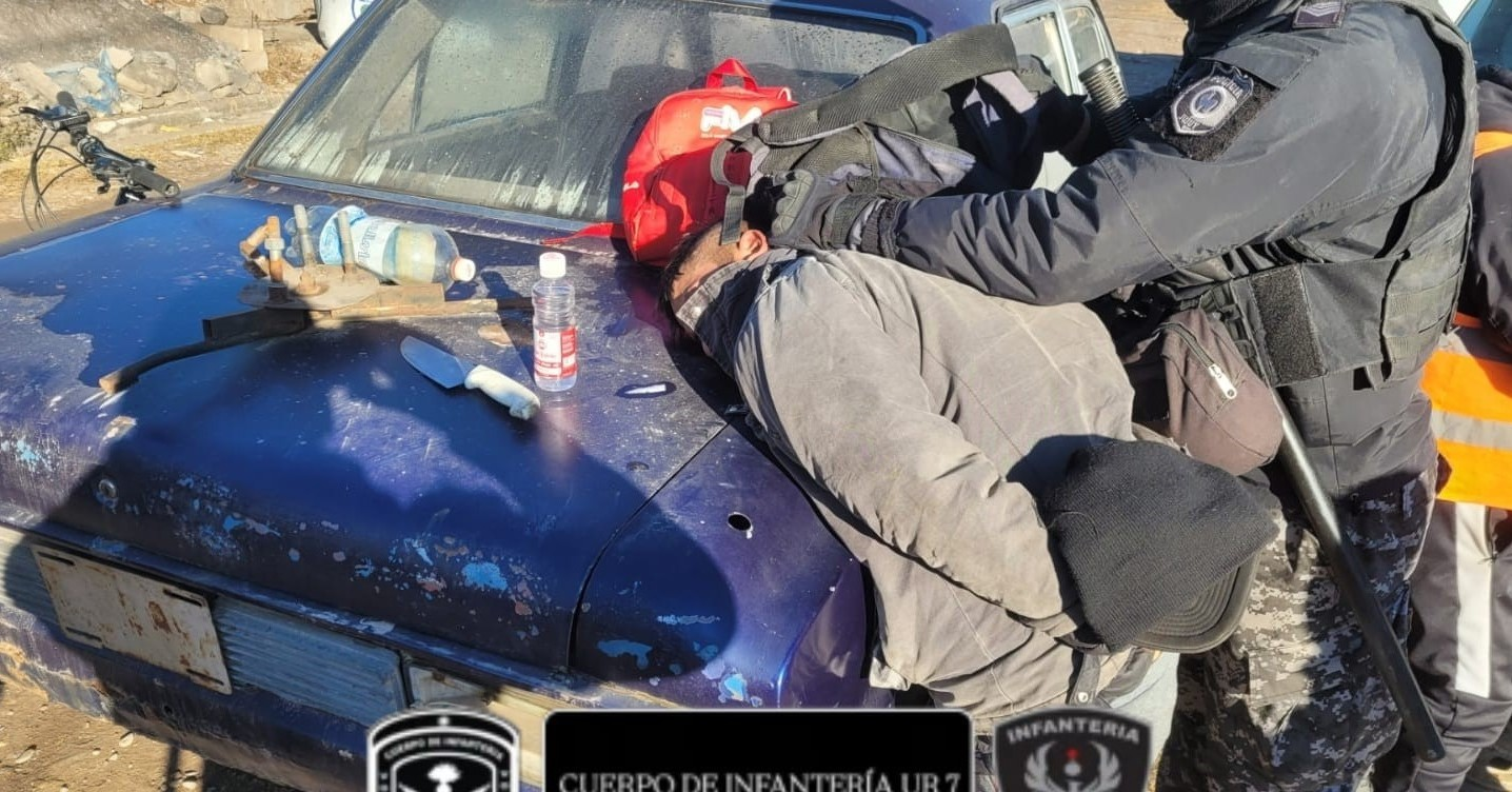 El hecho ocurrió a horas 09:45, cuando el cuerpo fue alertado a través del 911 que los masculinos, quienes tendrían restricción de acercamiento hacia la víctima, se encontraban amenazando a un sujeto con arma blanca, por lo que al arribar al lugar fueron informados por la víctima que los agresores se encontraban escondidos dentro de un auto abandonado, razón por la cual se entrevistaron con el propietario del rodado para autorizar abrir una de las puertas y atrapar a los protagonistas.