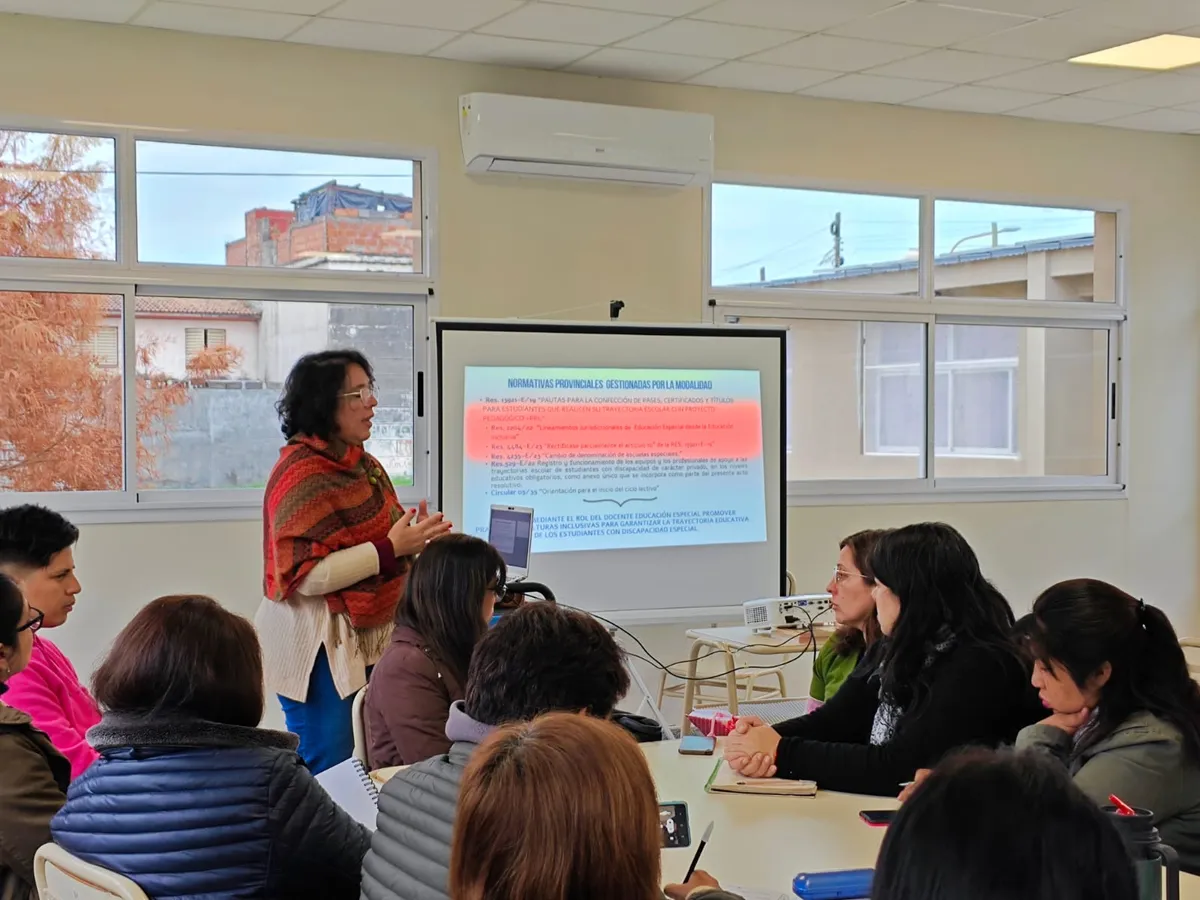 El encuentro se desarrolló este lunes en el Centro de Recursos para la Educación Inclusiva, en la capital jujeña, y contó con la participación de la responsable de la modalidad, Luciana Menacho; la supervisora de Educación Especial, María Ester Ramírez; el equipo técnico-pedagógico de la modalidad; y los equipos directivos de las Escuelas de Configuraciones de Apoyo de la provincia.