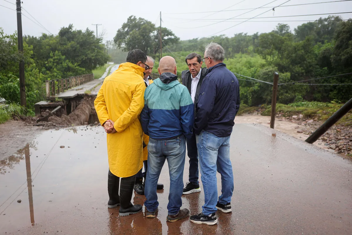 El primer mandatario estuvo en una de las zonas más afectadas por el temporal que azotó la Capital. Junto al equipo de trabajo del Ministerio de Infraestructura, pudo observar el daño en el puente del barrio Huaico en el tramo del arroyo Burrumayo, donde se desmoronó quedando inhabilitado el paso afectando a varios vecinos del sector de Reyes y Los Molinos.