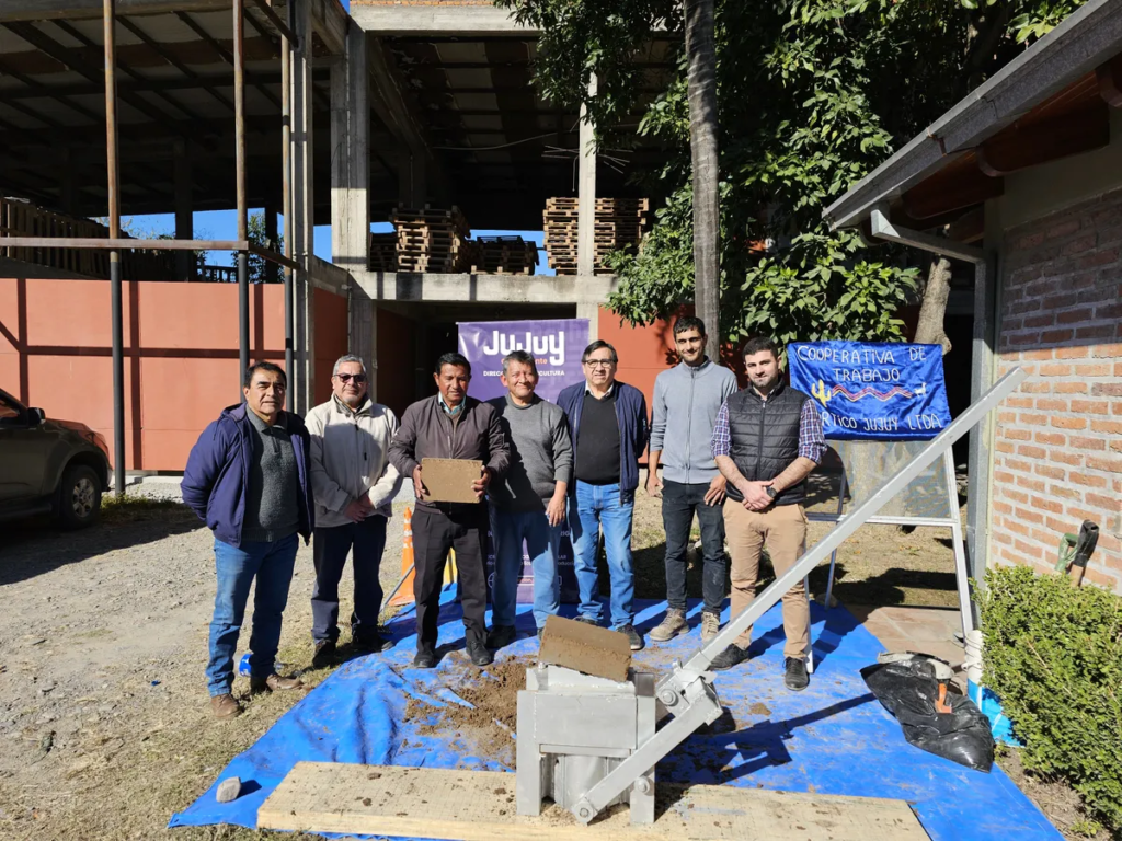 El secretario de Economía Popular Rubén Daza, expresó que la adobera entregada fue fabricada por la Cooperativa Pórtico de Jujuy y está avalada por el CONICET, “representa un avance significativo en la producción de adobes de manera sustentable. Es operada manualmente y utiliza técnicas de reciclaje, permite la fabricación eficiente de adobes con un mínimo consumo de cemento, contribuyendo así a la reducción de la huella de carbono y promoviendo prácticas amigables con el medio ambiente.