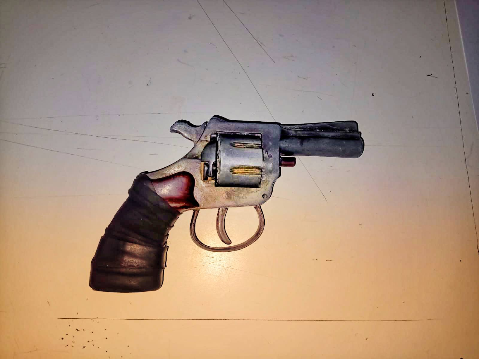 La rápida intervención permitió dar con el individuo, que intentó huir hacia un descampado donde fue reducido allí se le realizó un palpado superficial, encontrando entre sus pertenencias un revólver calibre 22.