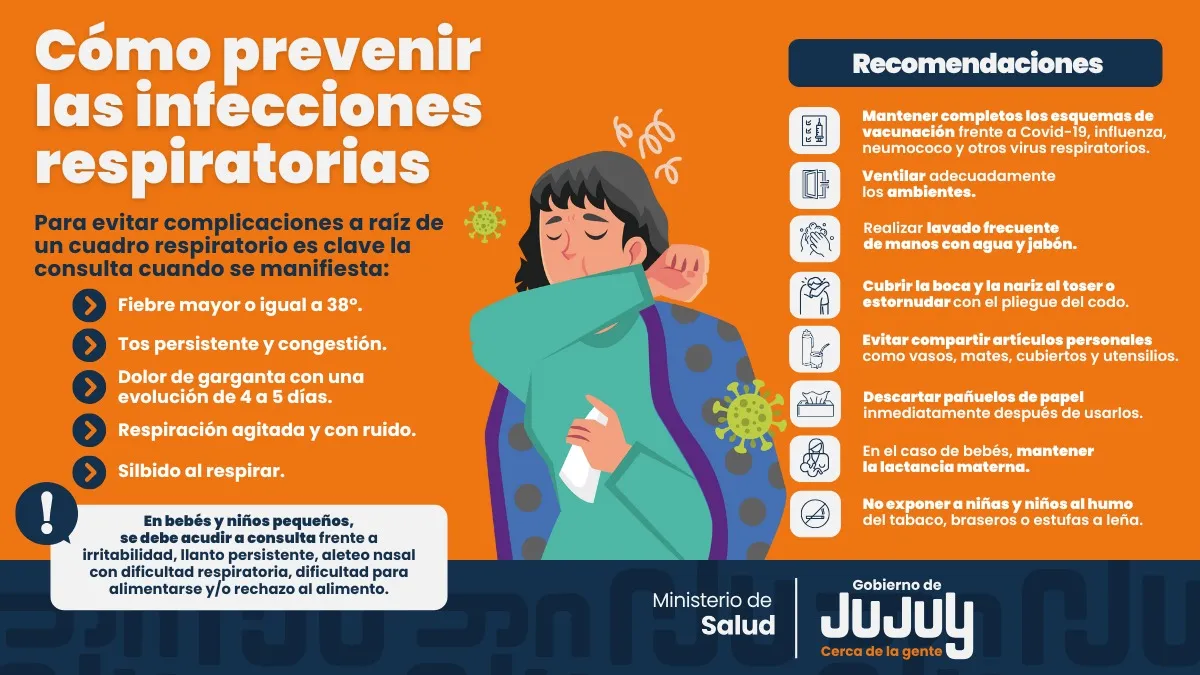 Además, recordó la importancia de mantener al día los esquemas de vacunación, en especial de antigripal y frente al virus sincicial respiratorio para embarazadas. También procurar una alimentación saludable y mantener la adecuada hidratación con agua segura “para la fluidificación que las mucosas necesitan para defendernos”.