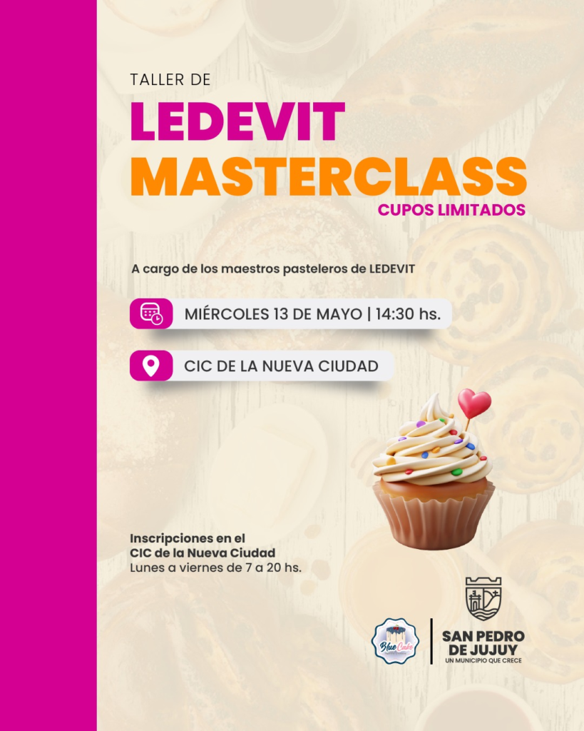 La actividad se llevará a cabo el miércoles 13 de mayo a las 14:30 en el CIC de la Nueva Ciudad. Durante la jornada, los asistentes podrán conocer técnicas, incorporar herramientas y explorar nuevos sabores vinculados a la pastelería profesional.