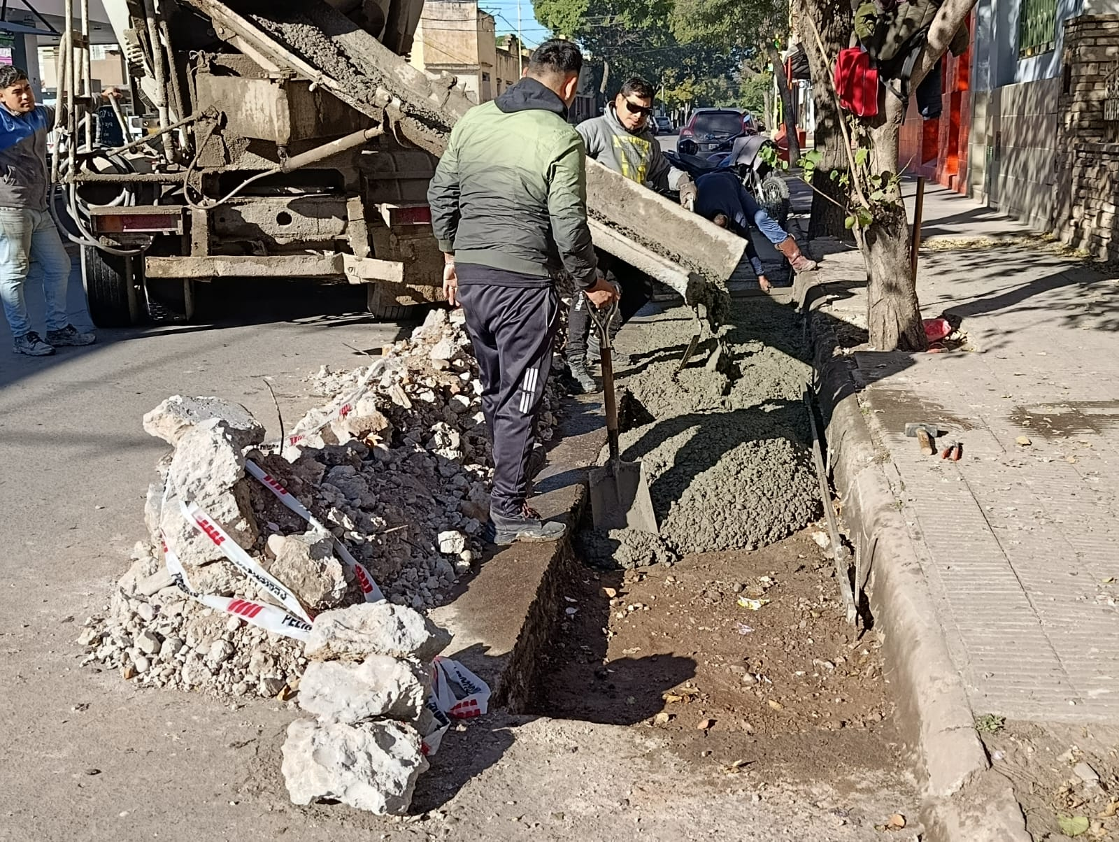 Personal de Pavimentación realizó trabajos de hormigonado en sector de cunetas en calle Mitre, entre Sarmiento y Aristóbulo del Valle. También se realiza igual trabajo en calle Rogelio Leach, frente a plaza Belgrano.