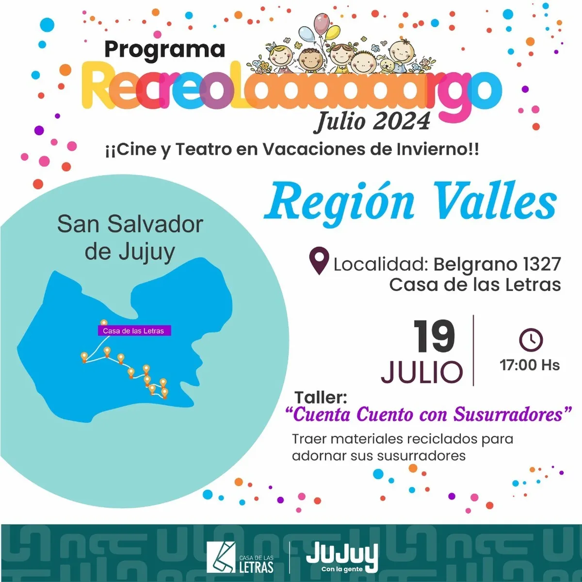 Cabe indicar que el programa prevé para estas vacaciones de invierno más de 60 producciones artísticas, entre presentaciones escénicas para público infantil y proyecciones de Cine Móvil y las actividades promovidas especialmente por municipios de la provincia. El cronograma se irá actualizando en www.agendaculturaljujuy.com