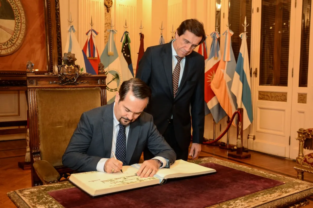 En el marco del Seminario Internacional sobre Ambiente, Desarrollo Sostenible, Gobernanza y Producción de Litio que se realiza en Jujuy, el gobernador Carlos Sadir recibió al embajador de Francia en Argentina, Romain Louis Nadal, oportunidad en la que destacó el interés de distintas empresas que consideran a nuestra provincia como destino para inversiones. Ademas, el embajador, fue declarado Huésped de Honor y plasmó su firma en el libro de oro del Salón de la Bandera.