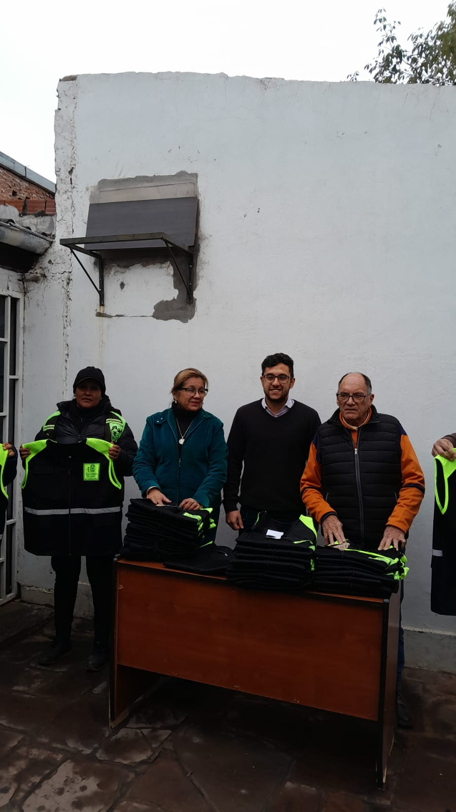 En las instalaciones de la Dirección de tránsito, se entregó nueva indumentaria para el personal correspondiente. Estuvieron presentes, el director de Desarrollo Humano, Dr. Ariel Bravo; la responsable de la Secretaría de Protección y Calidad de Vida, Liliana Saldaño y el director de la Dirección de Tránsito, Augusto Zambrano.