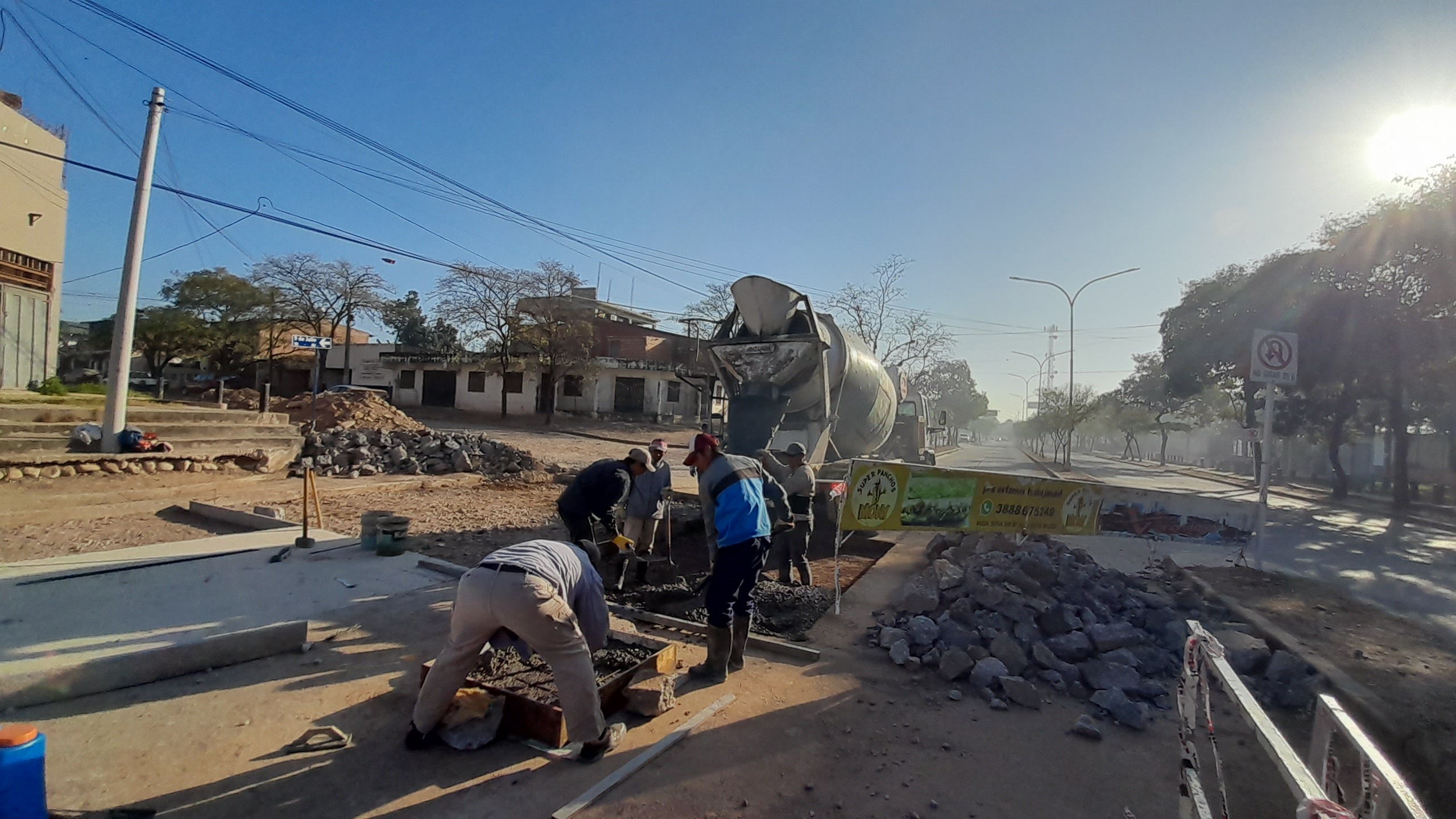 La Municipalidad de San Pedro de Jujuy, a través de la Secretaría de Obras, Servicios Públicos y Medio ambiente avanza con los trabajos de hormigonado y construcción de la rotonda en avenida 9 de Julio.