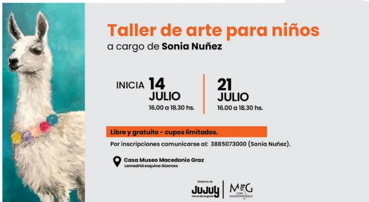 La propuesta está pensada para despertar la creatividad de los más pequeños en un espacio cultural emblemático, combinando juego, técnica y expresión artística. Los cupos son limitados, por lo que se requiere inscripción previa llamando al 3885073000.
