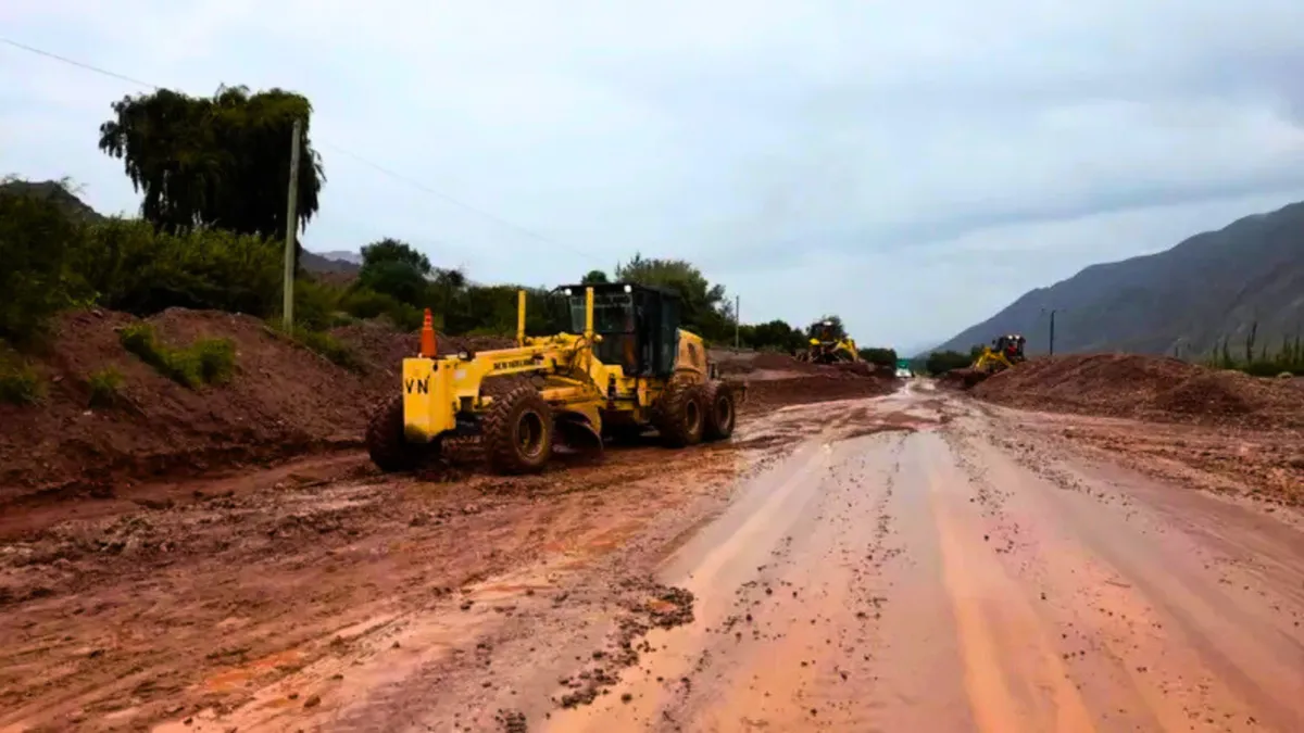 Los trabajos son ejecutados por Vialidad Provincial, donde se dispuso maquinarias para despejar sedimentos de tierra y rocas sobre la calzada.