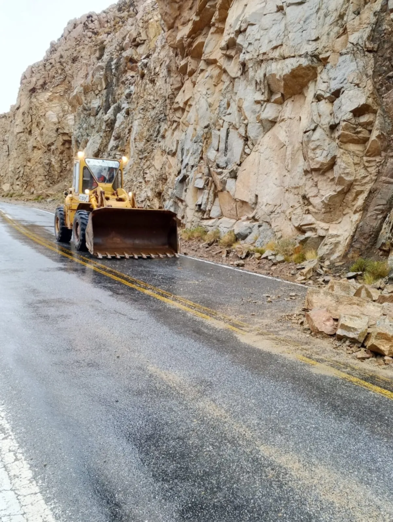 La Dirección Provincial de Vialidad (DPV), se hizo presente con equipos de operarios y obreros en la Ruta Nacional 52 (RN 52), Taire, para el despeje de la calzada, afectada por derrumbes tras las tormentas sucedidas.